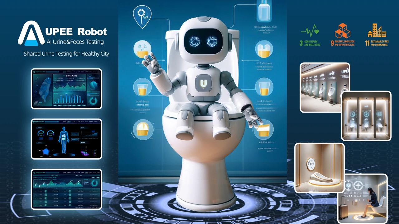 UPEE人工智慧尿檢機器人透過AI自動採樣與分析尿液,可於如廁時即時完成健康檢查,快速推播個人化報告至手機。產品適用公眾場所及居家,強調便捷、非侵入性、雲端數據管理,助力慢性病早期預警及日常健康追蹤,推動全民健康管理。*創新照護產品及服務名錄