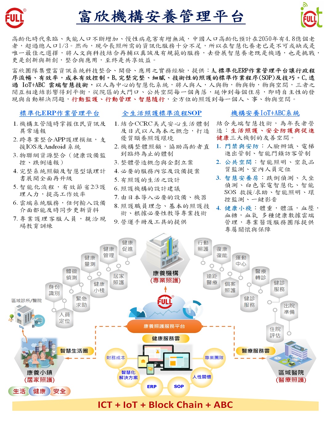 住宿型照護管理解決方案整合智慧量測、雲端管理與多語介面,支援自動上傳生命徵象、評鑑指標、報表產出。照護人員藉App與行動裝置記錄照護,管理者與家屬可即時查詢生心理狀態與日常資訊,提升照護效率與互動